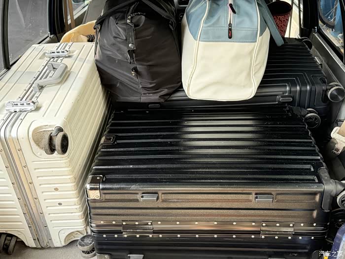 把后排放倒一共装满了3个大行李箱,四个书包和手提包,两个人加上行李估计要赶上原车重了,但这次是奥拓高速最稳的一次