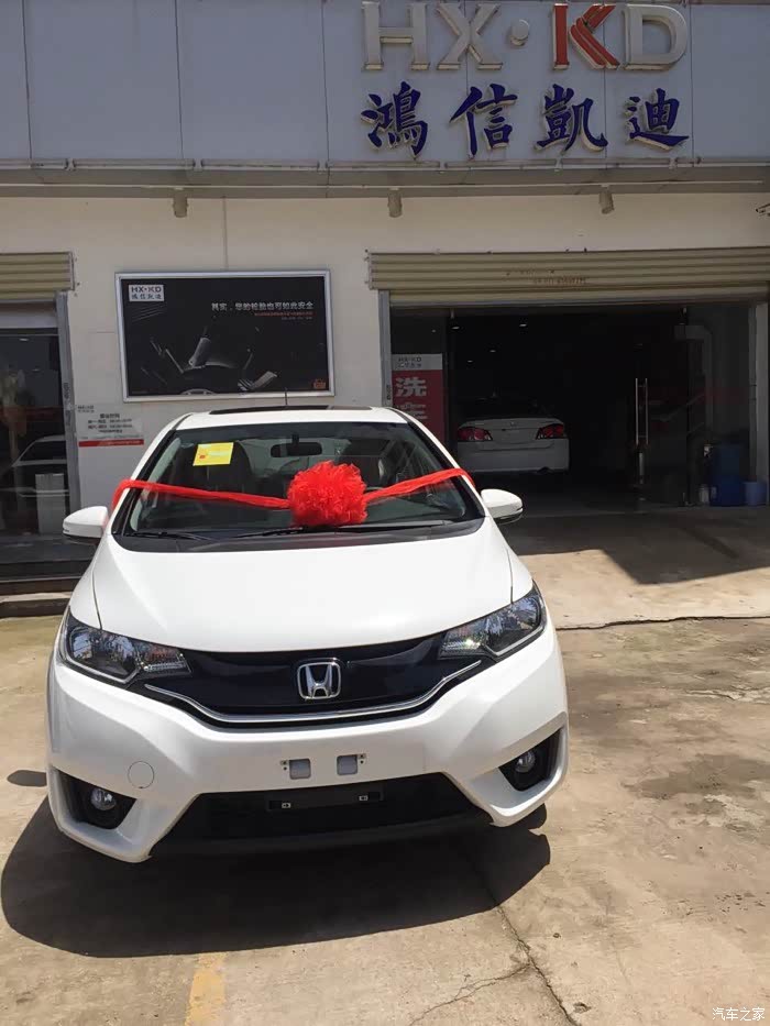 机会终于来临,老婆从结婚到怀孕后又抚养孩子一直承担着一个女人该尽的责任,无怨无悔。有一天她跟我讲她想开车,想开自动挡,想把我们的车换了,我知道这是她的心声,毕竟老婆和我结婚前也是个驾驶好手(自动挡)。难道这就是传说中的天时地利人和?于是凭借我这么多年来混汽车之家论坛的经验,给她推荐了飞度。空间,油耗,两箱的时尚造型,直接把老婆经去4s店看了实车,于是也被飞度吸引了。本来推荐的是888的配置,但老婆说没天窗,因为之前的车也没天窗,这次为了满足她的要求,我们升了一个档次,988。看完车以后,我就四处看优惠行情,对比过后决定直接到我一个经销商朋友那里订车,最主要的是我那个朋友鬼使神差的可以满足我一切车型颜色而且3天就能提车。4月30号交了点订金以后5月3号就电话通知我去提车。提完车回公司就感慨想发一篇***记录今天这个有意义的时刻,晚上开着新飞接老婆孩子。以下先写到这里,发点照片给大伙看看。顺便看能不能验证车主信息。