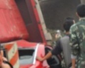 朋友 请你仔细 认真看一下这张图片以及两车的碰撞角度!!!!看下550前仓靠驾驶位方向是与大货的什么位置接触的!! 没错!是与大货满载黄土的车厢前角相碰撞!这个角度应该说是全车撞击力度最强的碰撞点,而车头应该是最轻的部位则是压在550驾驶室中间及靠后一面,当然从这张图上也不难看出 车头压住的550中后段甚至都没有变形!从这张图上看 驾驶室及550前机头盖部分应该是所受撞击力度最强的位置,而后面这张图我们又可以看到550的A柱几乎没有太大的变形!