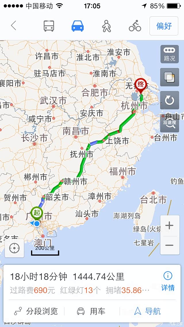 ,高速路费共计672元,满油开到离江西赣州不到开了5444公里,在服务区再加到满花了200元,让我实在没有想到马儿真的够省油的!到达苏州下苏嘉杭高速再加满油,粗略算一下单程花了700不到的油钱,这个可以有!回到家乡少不了亲戚朋友的盛情款待,天天就是切切切,苏州天气太热了比广东还热,回程去了浙江临安、黄山、一路游玩从安徽转江西路况都很好,初次发表表达水平有限多多包涵.