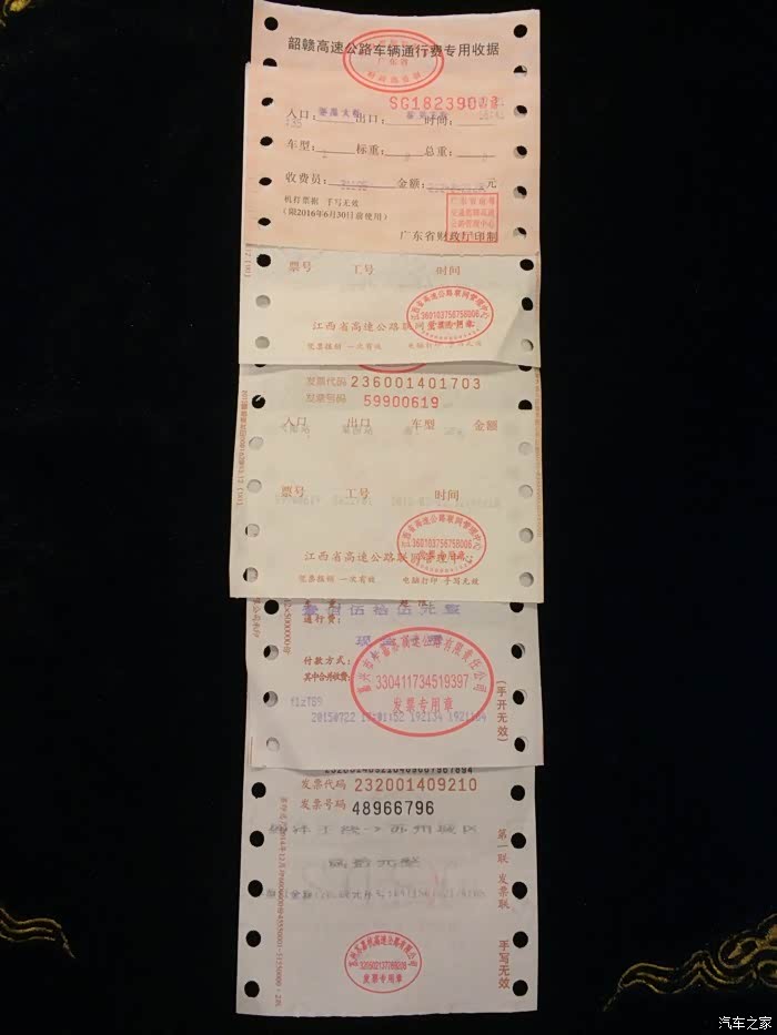 出广东高速收212元,梅关-鹰潭235元,上饶-衢州出江西收了50元,浙江一路到嘉兴155元,盛泽-苏州城区20元