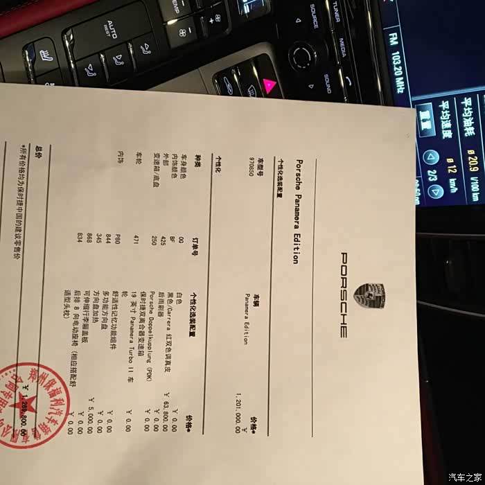 车是九月份提的,到现在两个多月,在郑州4S店提车,喜欢红内正好也有现车,当天就提了,帕拉梅拉本身配置不算低,我看别的车型要选装的帕拉梅拉本身就自带了,比如头枕印花 彩色轮毂标 卡宴不标配的电吸门,配置就不说了,大家肯定比我懂。