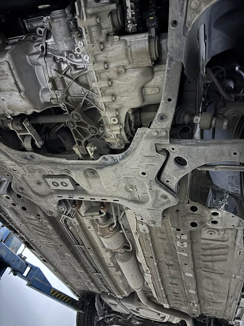 赶到店里时,老友已把工位腾了出来,二话不说就将车子开上举升机。随着机械臂缓缓升起,平日里看不到的底盘全貌展露无遗——轮胎纹路、悬挂部件、油管线路一目了然。老友拿着手电仔细排查,一边指给我看:“底盘护板有点刮痕,但没变形,还算幸运;刹车盘磨损在正常范围,还不错。”他逐一检查了球头、减震器、传动轴,连细小的油管接口都没放过,还耐心讲解每个部件的作用,哪些是易损耗件,哪些需要定期保养。