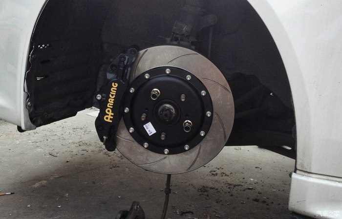 换上了AP Racing的CP5200,黑色卡钳 黄字