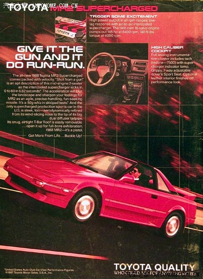 此车的外观仿照法拉利F355设计,坊间则管MR2叫穷人的法拉利。