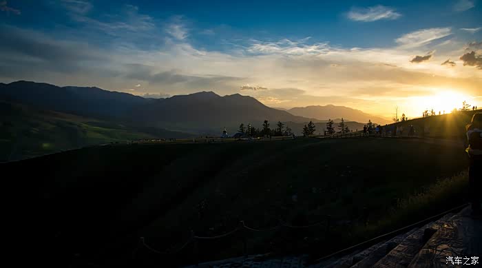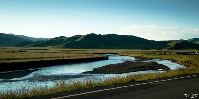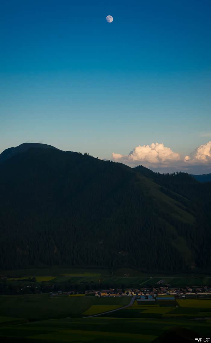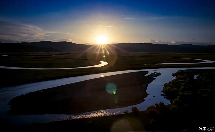 经过400余公里、一天的奔袭,我们于下午7点40左右顺利抵达红原县城旁边的月亮湾(说好的4点呢),恰好在日落之前,要再晚20分钟,估计什么就看不到了。月亮湾虽说没有唐克的黄河九曲第一湾那么壮美,但时间已不容我们赶过去了,好在景点不收费,只收10元的停车费。