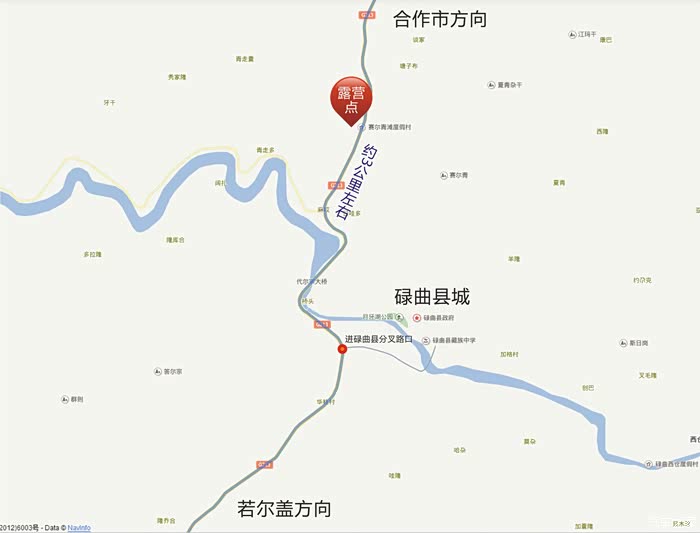 来之前听来过的同事说,碌曲有个非常好的露营点,在过了碌曲3、4公里的一个小河谷下面。于是我们到了碌曲之后,让余下的车辆在进碌曲路口等,本队长前去找露营点,若找不到就到碌曲县城住。