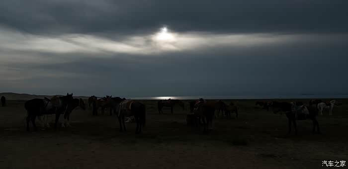 晚上挂念着拍青海湖星空,睡得迷迷糊糊的,结果头晚的乌云告诉我,这一切都是奢望。实在睡不着,坚持到快5点就起床了。这是湖面西方天空挂着一轮大大的明月(青海的月亮真的比我们这里大,是海拔的原因吗)。拍了几张,可惜没拍好,就不献丑了。