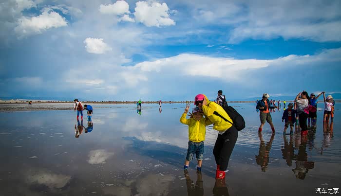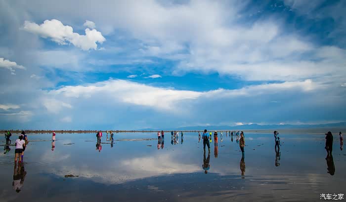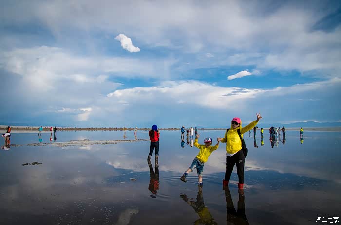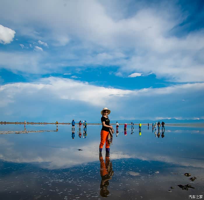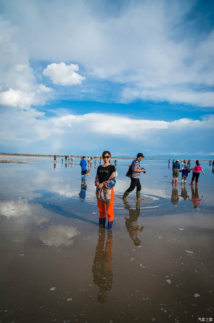茶卡本应是静逸之美,却挤了太多的人。小火车早已不开了,因为铁轨上全是密密麻麻的人;盐池了的水早已被人搅浑,进去必须租水鞋,而且会有很长的一段泥泞的路要走,稍不注意就会把鞋子扯掉。不管怎么,既然来了,也要拍几张所谓的“天空之镜”回去。至于到底效果如何——只有靠哥的技术了。