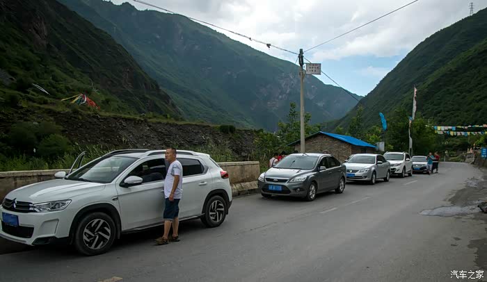 大家的心情是降到了冰点,先前觉得明媚的太阳此时也成了恼人的烈日,我也无心再拍两边的风景了。同行的凯哥开始还要擦擦他爱车的玻璃,后来也屈服了(我们总结凯哥有“三爱”:擦车、加油、打左转弯灯)……路是越来越烂,坑是越来越大,灰是越来越高,最辛苦的就是车了。小三在漫天的尘土中上坡下坎,好在在这高海拔的烂路上它的动力还是够用,司机斌哥也称赞她的动力。而且小SUV的基因让她通过这些烂路也基本没有问题。不过一次在跟一大货车后面,由于跟车太快,货车扬起的灰尘根本看不清路,只听“哐”的一声巨响,小三撵上了一个大坑,我的心也跟着这声巨响碎了一地……