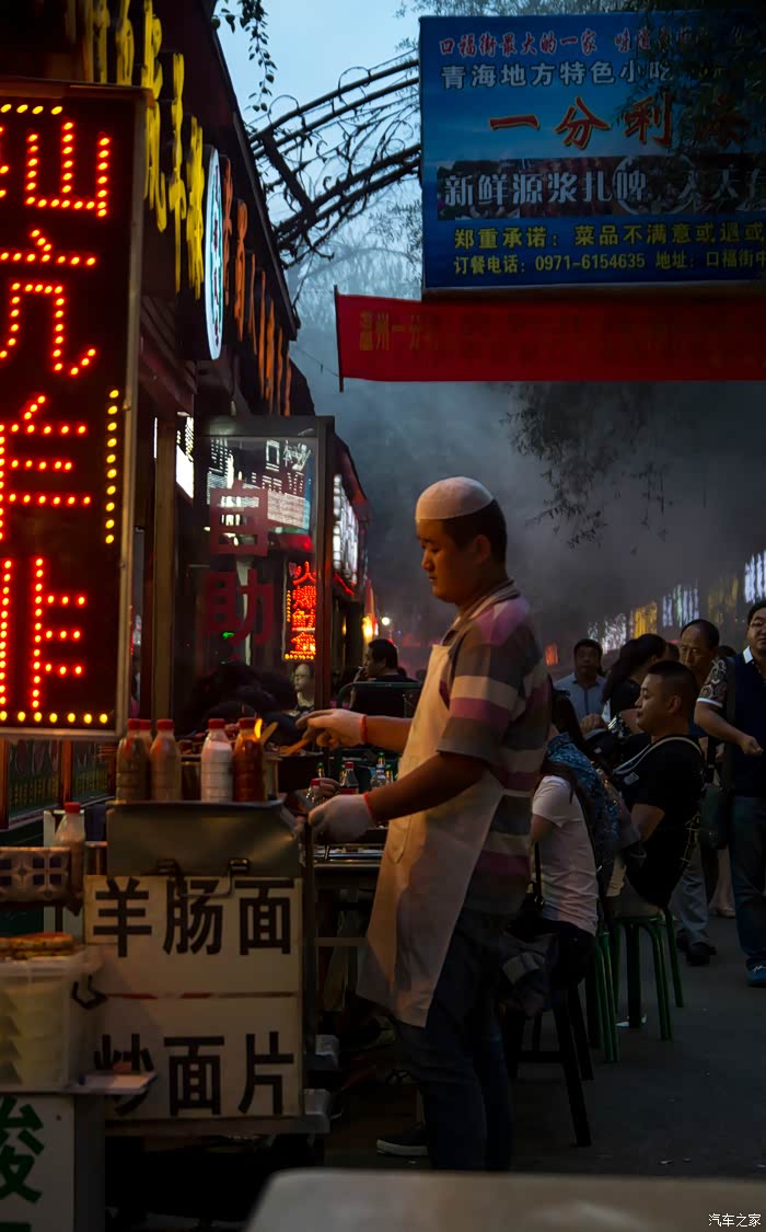 到了酒店,放下行李,简单洗漱之后,大家都分头行动,轻装上阵去逛西宁城了。朋友推荐我们去口福街,然后到南山去看夜景。