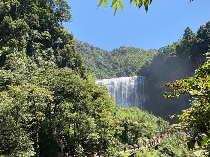 赤水旅游一路竹影婆娑,层峦叠翠,眼睛得到了极大的享受。共用了接近一个小时,到达 赤水 大瀑布景区,绝大部分人都选择坐摆渡车,我们一行三人选择走路去亲近大瀑布,以表达我们的诚意,还好,累是累点,但也值得。需要重点介绍一下景区内丰富的动植物,桫椤,罗伞等,千姿百态,身旁无数人与事,我自美丽。尤其蝴蝶多,或群舞,或单飞,或比翼齐飞,不管何种形成,作为人类,只能惊叹。赤水 丹霞大瀑布,头顶蓝天白云,脚下丹霞乱石横卧,潭水翻涌,身后丹霞峭壁高悬,周边原始森林翠意浓浓,四季如春,“风景这边独好”。也多亏了这次爱车十分给力,没有让我在开车的路途中消耗太多体力,要不怎么有力气爬山呢,所以啊买车还是要买适合自己的,哈哈哈。