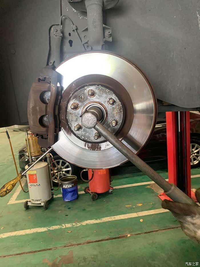 前几天车子开着行驶的时候会发出嗡嗡的响声噪音会很大,听起来和胎噪声不同。判断是前轮轴承坏了。