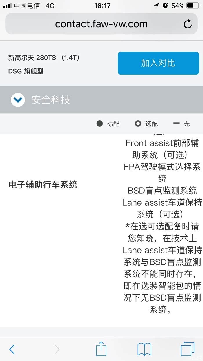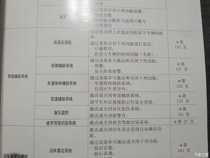 我反复翻了好久,中控屏幕里面只有自适应巡航系统,前部辅助系统,车道保持辅助,还有疲劳驾驶提醒。并线辅助和盲区监测根本就没有菜单选项。