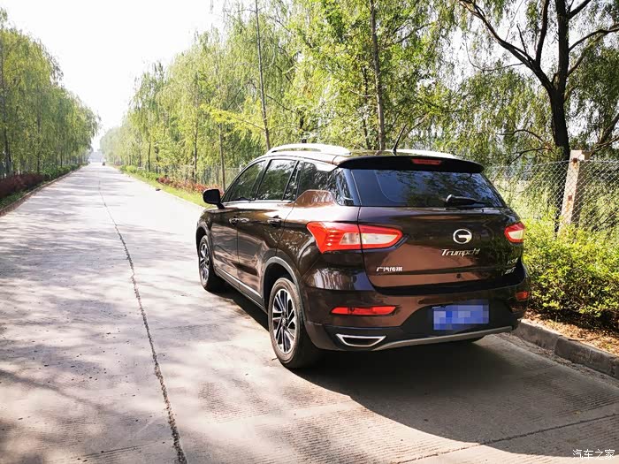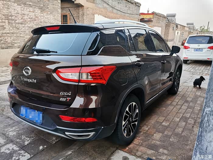 爱车是15款传祺1.3T手动精英版,颜色为比较稳重的摩卡棕,个人感觉还是比较大气的。2016年国庆节当天,本来是想提一直关注的国产江淮瑞风S3,结果阴差阳错提了小四,不是不想,银子决定一切啊,谁不想要好一点的,毕竟小四比小三要高了一个级别。说实话,当时真的不敢想,gs4,H6等也只是在汽车之家略了解了一下,H6也不错,号称当时最强国产SUV,连续几年领跑SUV销量榜首,无奈媳妇对轰六的外观不感冒,特别钟情于小四,我是想,小四虽说是国产,但常年与两田等各大汽车厂商合作,多多少少会有一定的技术含量,传祺也是在快速的发展中成长,就相信一回传祺,支持一下国产,还好有大姨子的经济支持,当天就刷卡,全款支付,办理强险,随车手续等等。车辆经过了三个小时的出库检查,晚上6点半离开4s店,直接上高速奔波一百公里,晚上8点回到家,心里有种说不出的美……