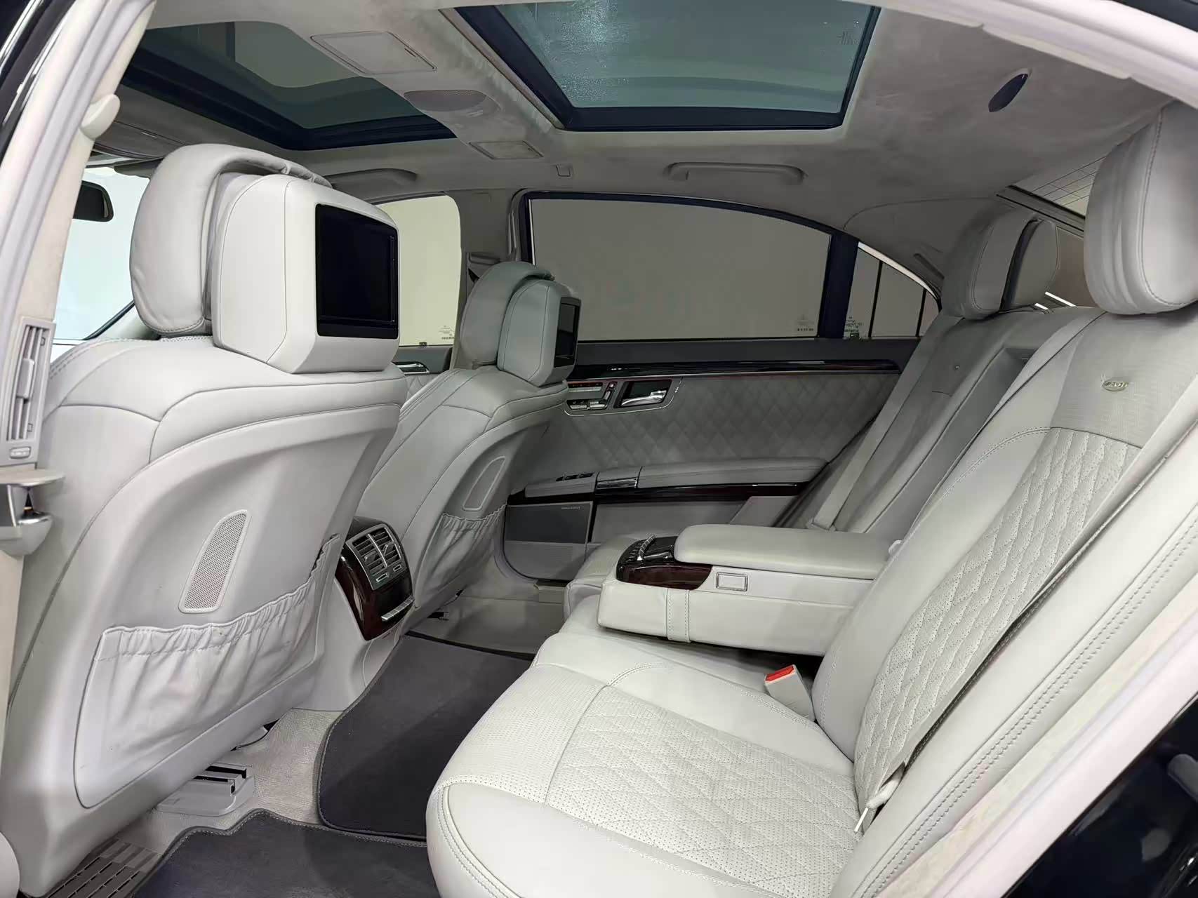 此外,车内的豪华配置更是无处不在。Burmester柏林之声音响系统带来身临其境的听觉享受,每一个音符都清晰通透,如同在私人音乐厅中聆听交响乐;特调香氛系统能营造出独特的车内氛围,让驾乘者在行驶过程中始终保持愉悦心情;全景天窗让车内光线充足,与车顶的白色真皮包裹相得益彰,进一步提升了内饰的豪华感。中央扶手与后排扶手箱内的无线蓝牙电话,既兼顾了实用性,又彰显了当年的科技水准,这些细节配置共同构成了S65 AMG无可挑剔的豪华座舱。