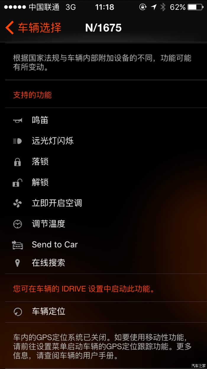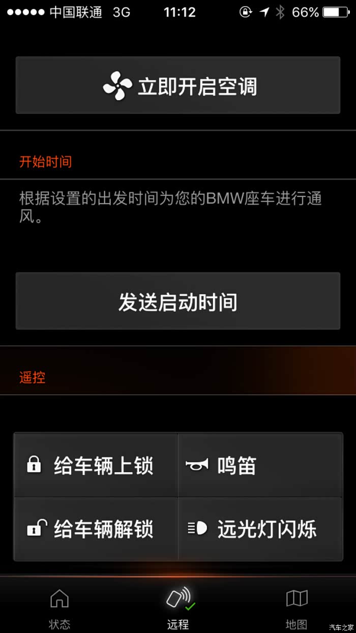 1、 手机下载名为 BMW Remote的APP,可以实现对车辆的远程解锁、上锁、鸣笛、通风等功能,注意,这些远程是通过手机发动指令到BMW服务器,然后服务器接受到指令后发送给你的车子,真正意义上的远程,即便是你人在外地,车在家,同样可以远程控制。