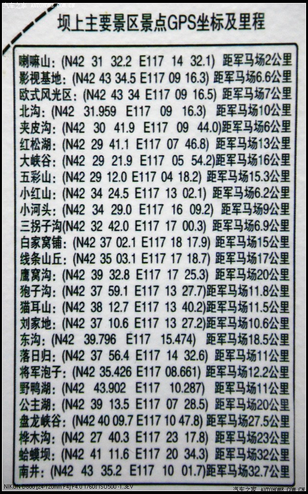 当时的拍摄位置坐标值 图中小方块是原图所标影友们常拍的位置、也可以另择新地拍摄
