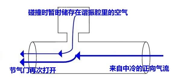 由于有了谐振腔节气门前管道中的正反方向气流冲撞会进入谐振腔中暂时储存。