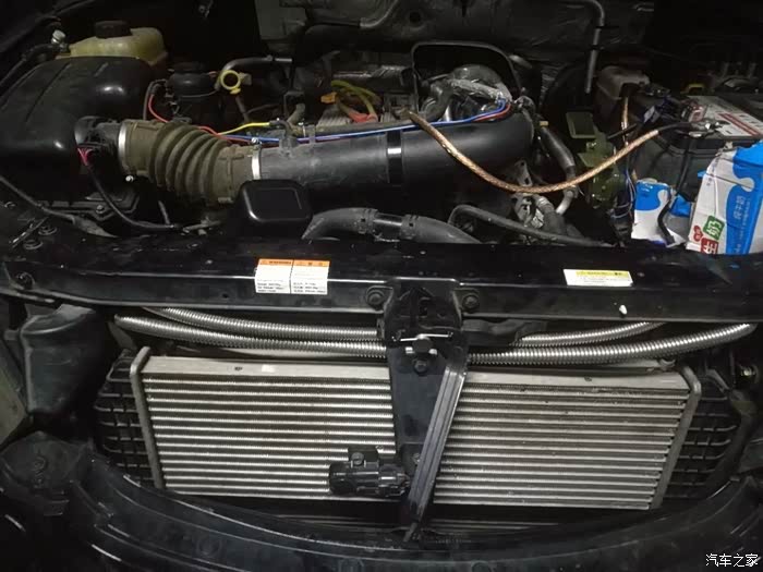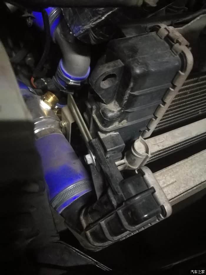 我说过大五改造只谈气,大五设计中冷是个短板,让涡轮与节气门之间形成一个大的气阻带。涡轮增压器介入后,对进气进行增压,同时气流温度升高经中冷器前管输送到中冷器降温,气流降温后压力同时下降,另外由于中冷器的设计存在管路阻力问题,气流经中冷器出来后压力和流量同时变小。为解决这个问题我采取了两项措施。