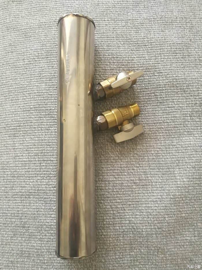 我的做法是借鉴前人经验,在靠近节气门位置为大五安装了一个储气瓶即谐振腔,来解决这一问题。如图: