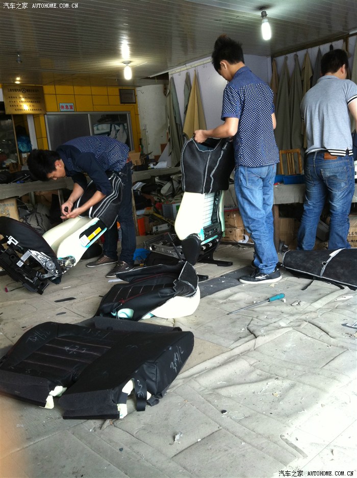 端午节那天,闲暇无事,发车前往汽车城,准备升级我的坐垫,一锤定音——选中一家真皮现场制作店,1800元(9人大作战,耗时5小时)