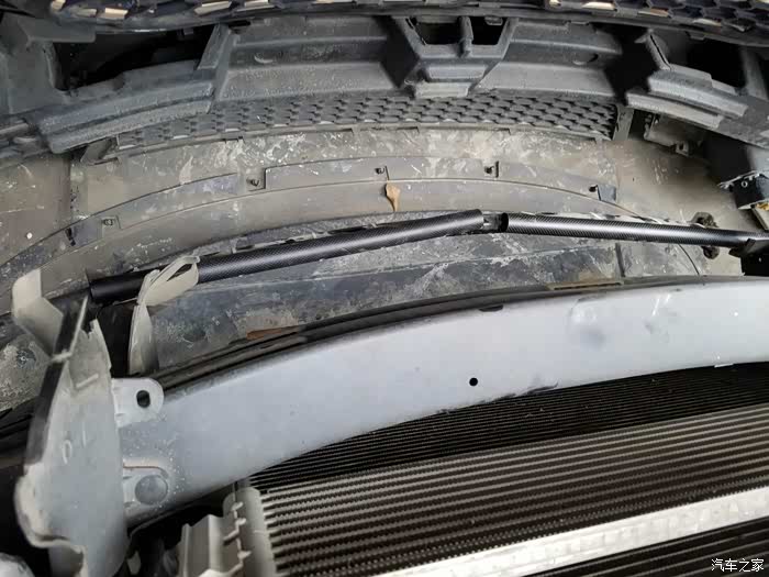 也可以利用饰板和前脸向内延伸的特征,在前杠支架上焊接或是捆绑一些合适的硬物,将其承托住,