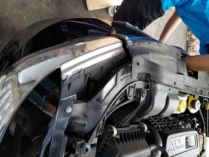 ↑随便到一家汽修店就可以施工,不需要技术含量,就是比较繁琐,需要耐心,拆开前杠饰板