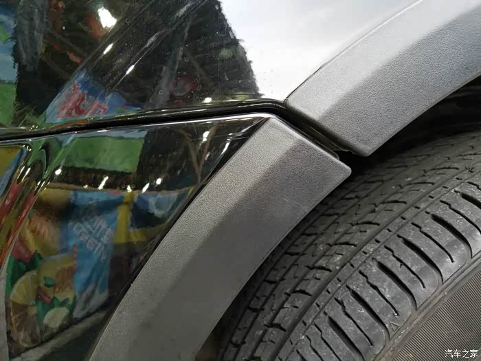 但是施工完后,前杠饰板有了承托力,到了这个位置就不会再向上翘,或者说向上翘的程度没这么大,所以这里的缝隙就是比原来大一点,而且本人加装了防剐蹭的保护胶条,所以缝隙看着就更大了~