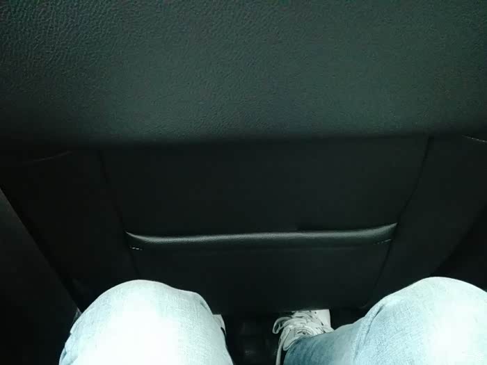 福克斯后排也没那么小,本人一米八,前排是我平时驾驶调好的位子,如果坐直的话腿部空间还有接近两拳,颈部正好靠着头枕,还有接近四指空余,座位柔软度刚好,支撑也到位,坐着反而不累。当然,本人属于瘦子