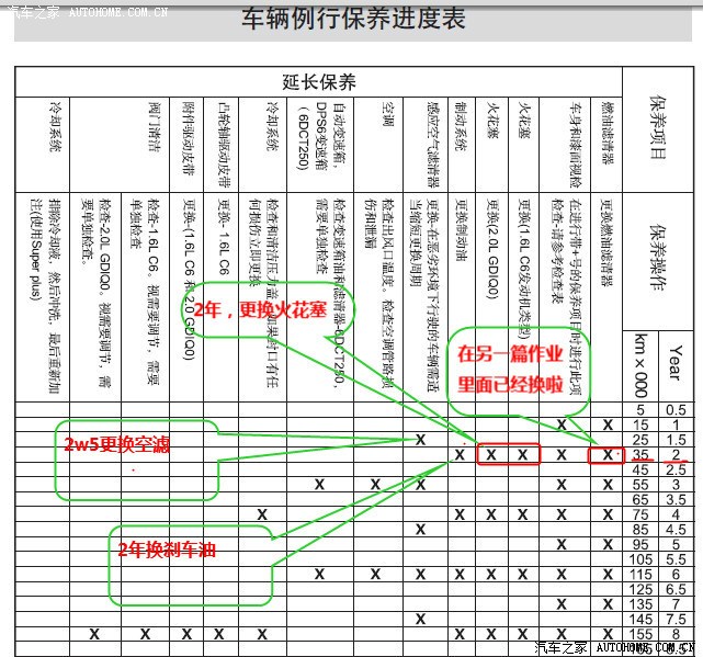 按照官网车主手册,2年或者3.5w公里,应该做的保养有: