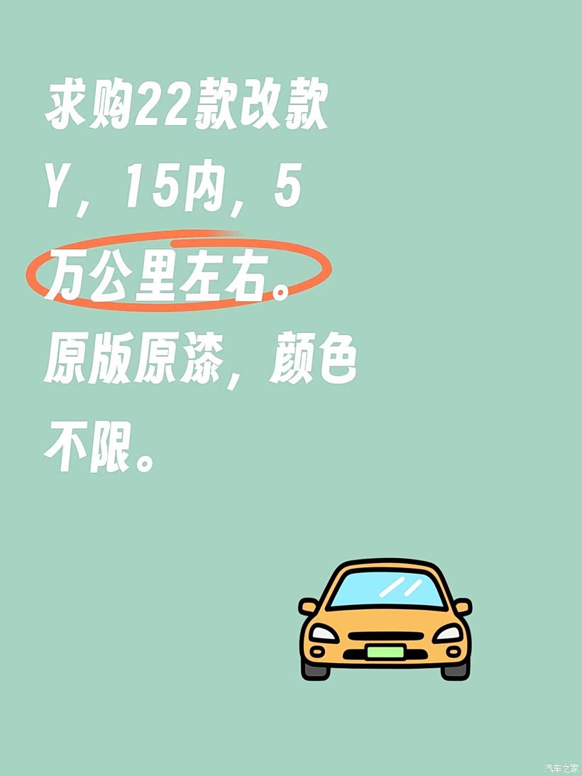 求购22款改款Y,15内,5万公里左右。原版原漆,颜色不限。
