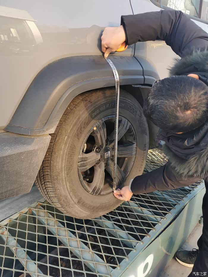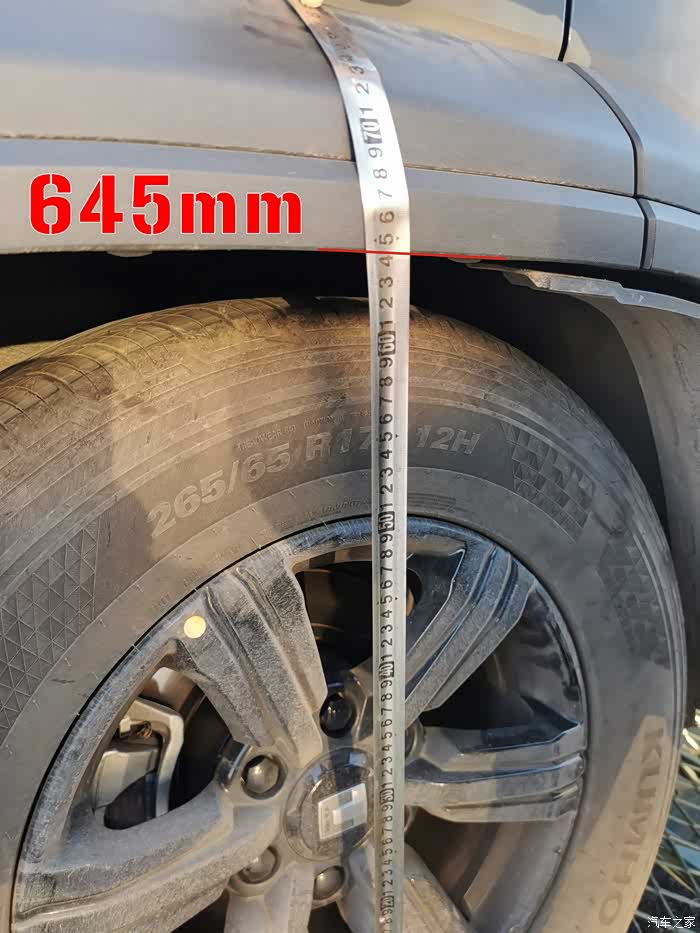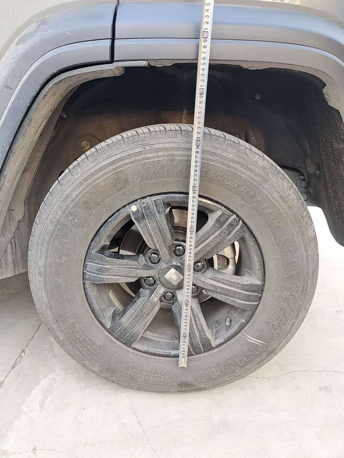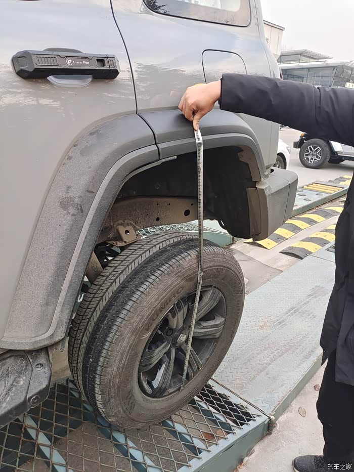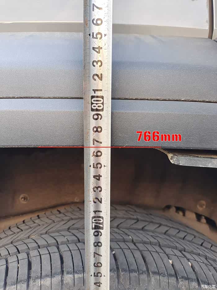 平地测试,也就是在水平路面上,测试轮毂下缘到挡泥板的距离。