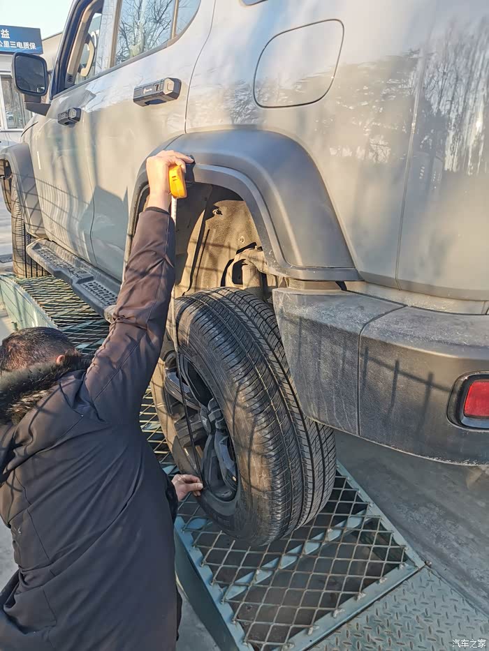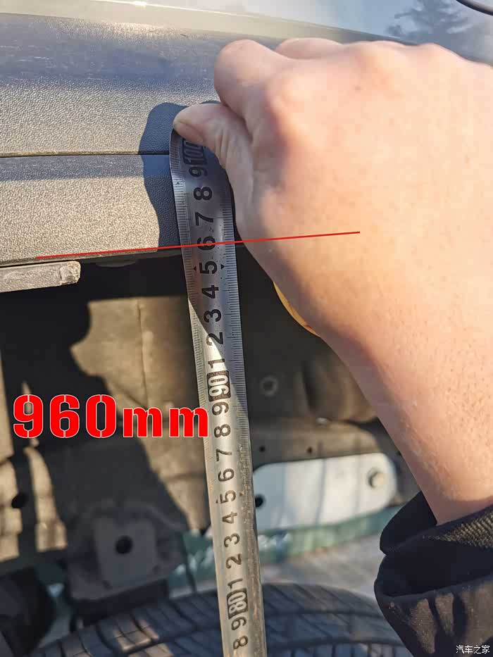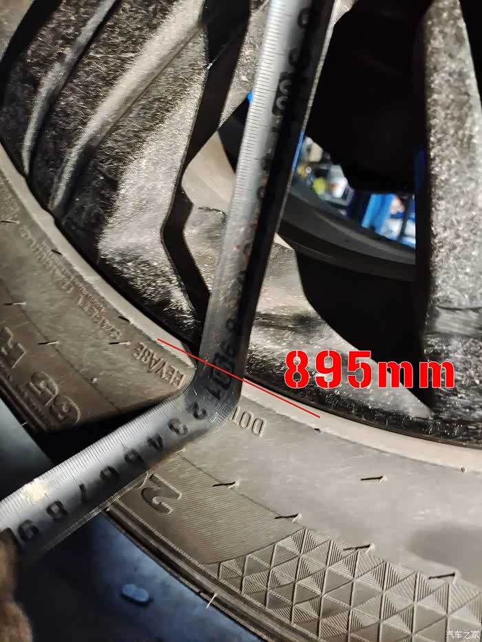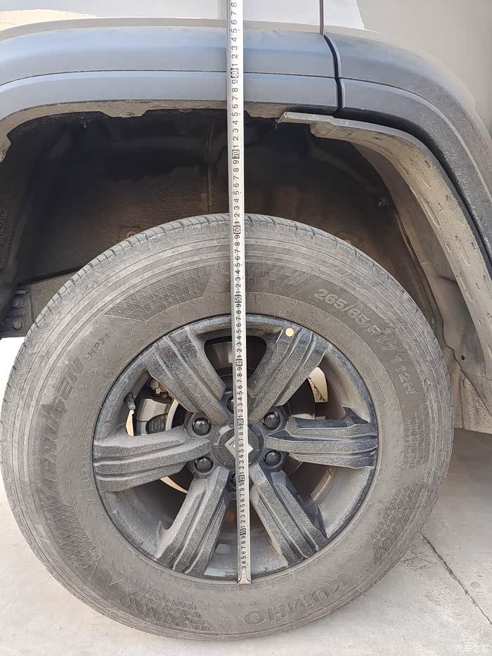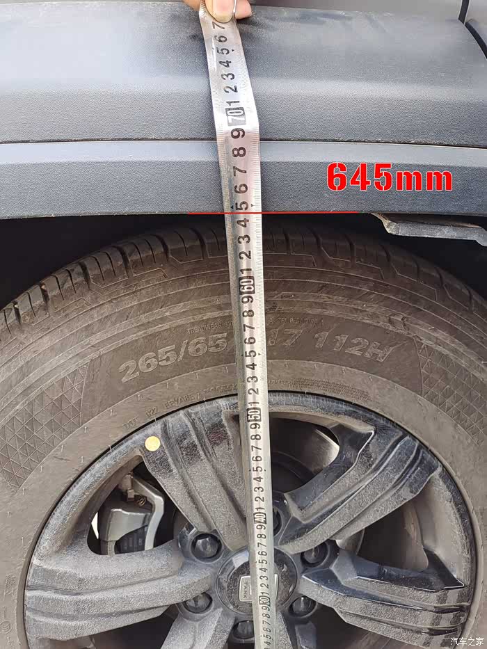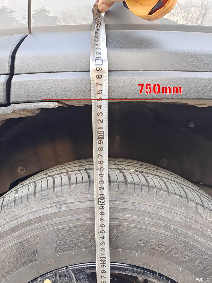 平地测试,也就是在水平路面上,测试轮毂下缘到挡泥板的距离。