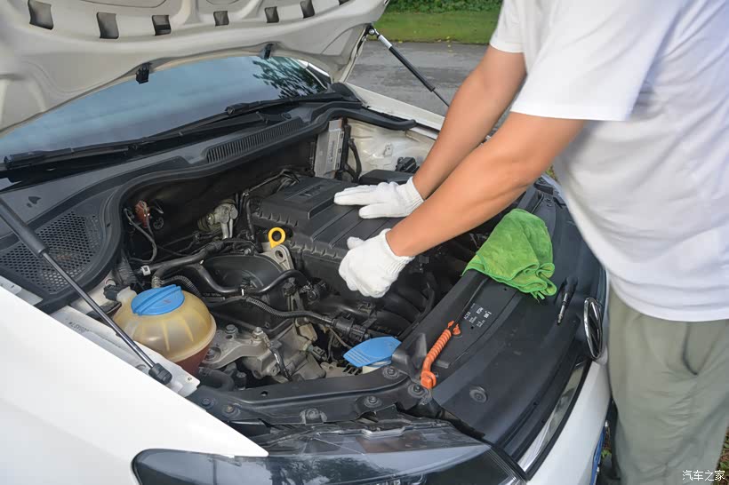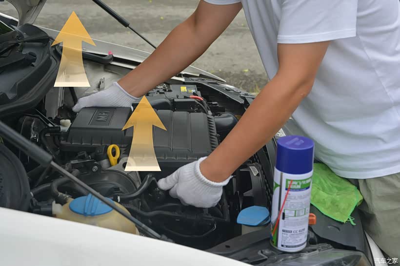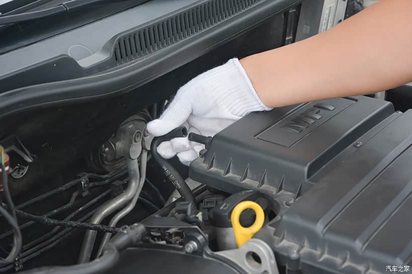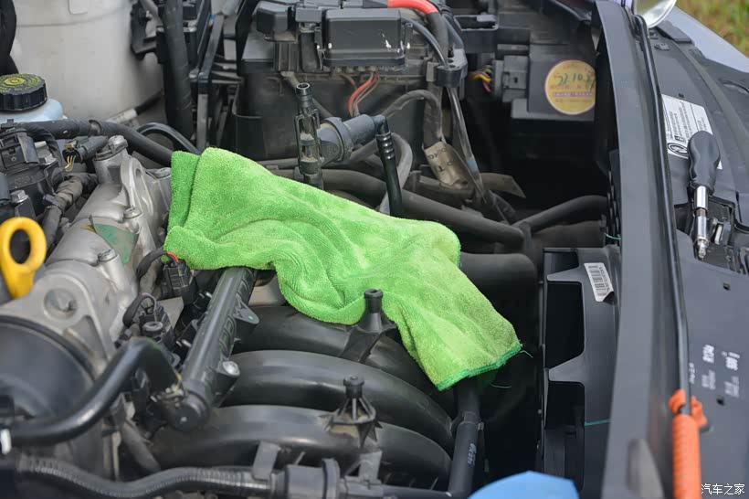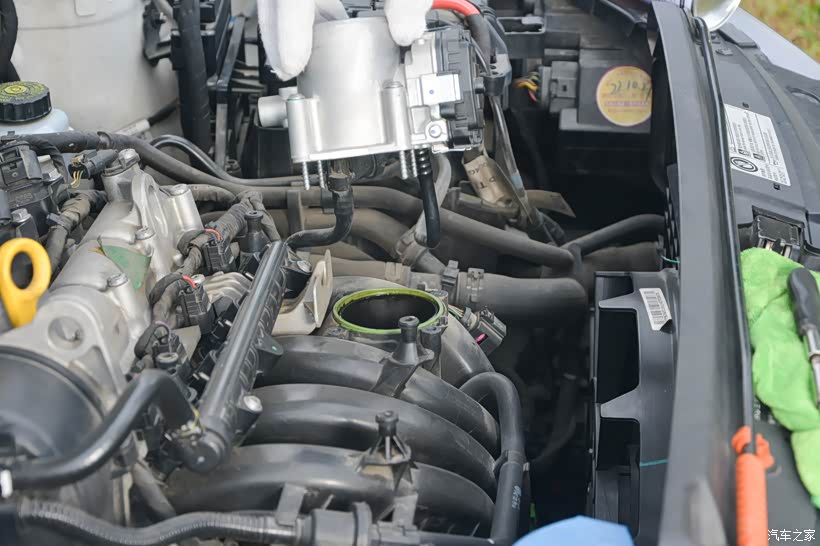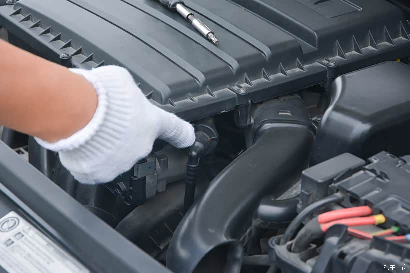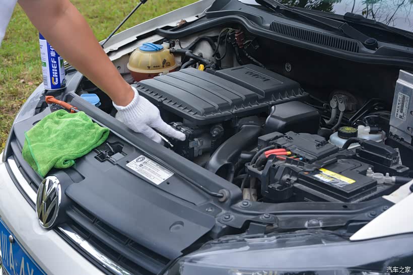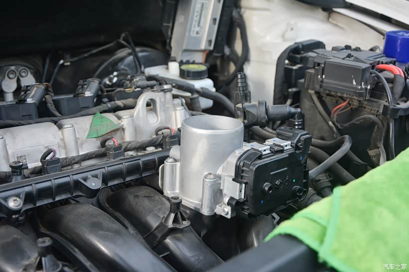 (1)打开POLO发动机引擎盖,找到节气门位置;