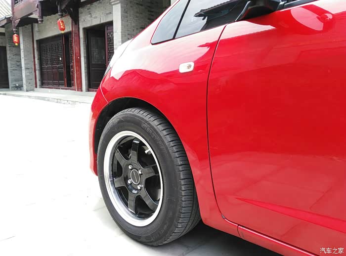 车刚提回来时,钢轮毂,窄轮胎,特别素的车身,看起来就像领导说的跟路边老年车差不多,哈哈,而且路边的老年车很多也是红色,所以红色看起来有点掉价!于是这让我有了改装的冲动,改装的目的是为了让车子显得与众不同,不改动力,只改外观,一切以实用为主!