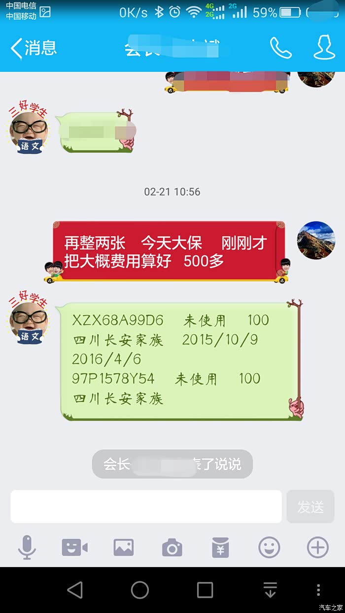 一边喝水一边玩手机,和车友们聊着,提前和会长联系好 兑换号电子券,保养具体要做哪些项目提前就决定好了,大概估了下费用,所以兑好券以备用。
