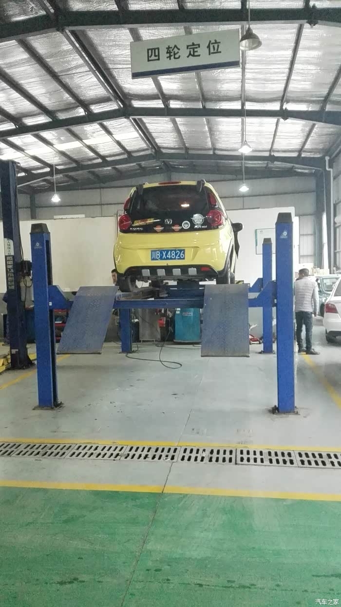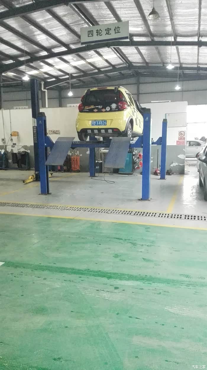 其他的工位已经满满的了 小奔挺四轮定位的架子上保养,来几张靓图