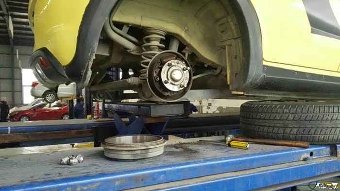 然后又着手刹车 主要是后边的刹车盘,的取下清理里面摩擦产生的铁销