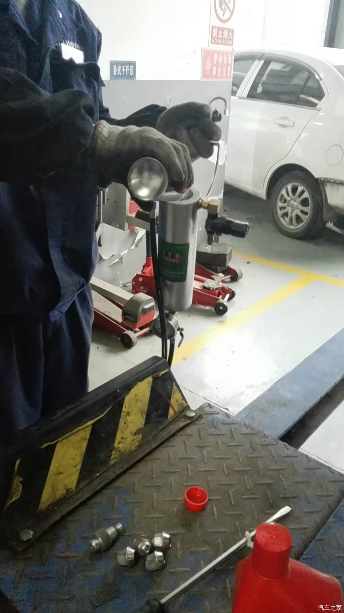 哎呀 错过好多保养的细节了呀,赶紧起身往车间走。错过太多了 换机油没赶上,换机滤没赶上,和就又少了很多照片的,连油滤都弄好了,算了 将就拍个照吧。