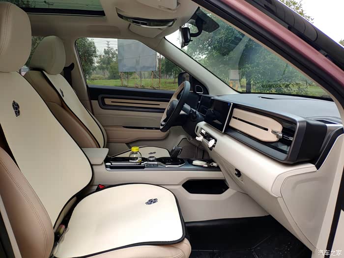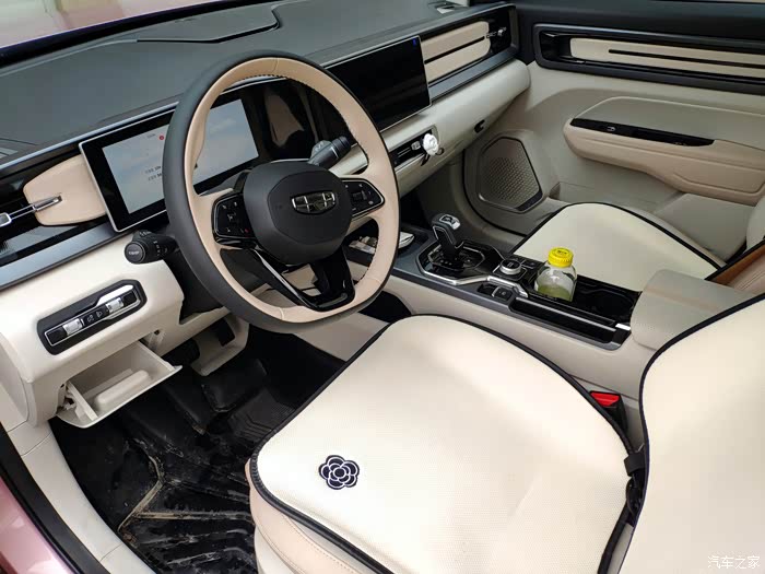 内饰颜色搭配挺好看的,淡淡的米色加上银色的装饰看着还是很时尚的。加上车子的空间也挺宽敞,三四口之家使用还是很合适的