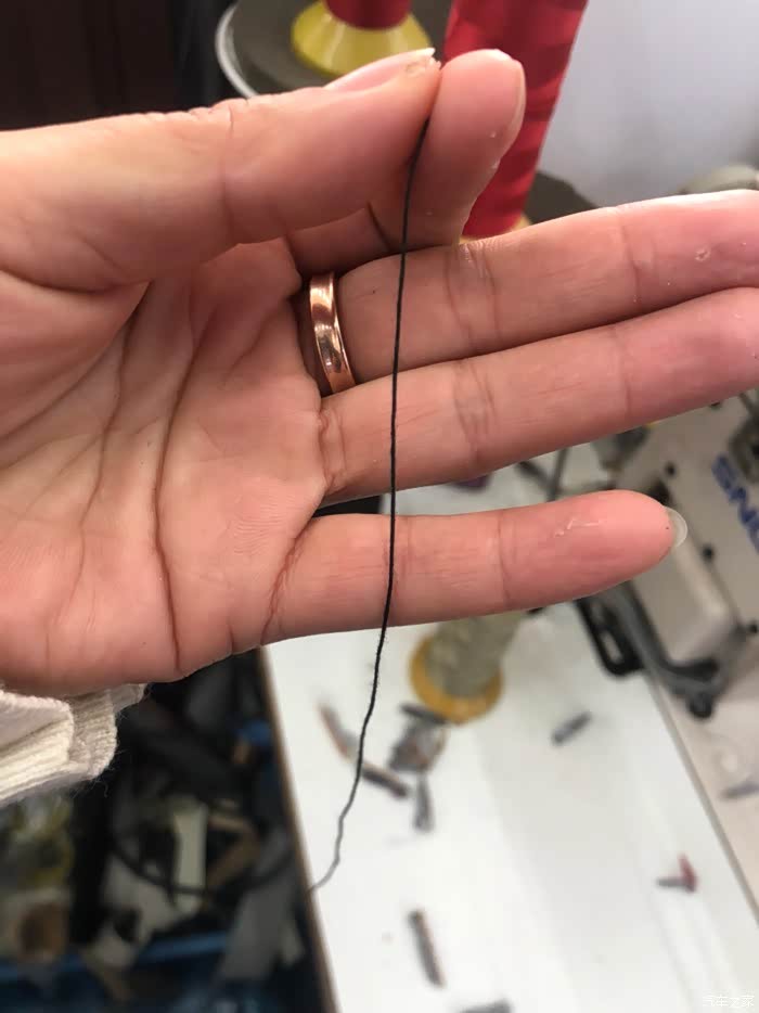 气囊处采用专用的气囊线,也就是图中左侧黑色线,而真皮部份则采用黄色的真皮线。是有区别的.