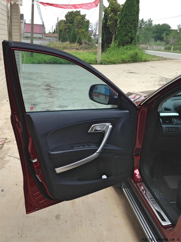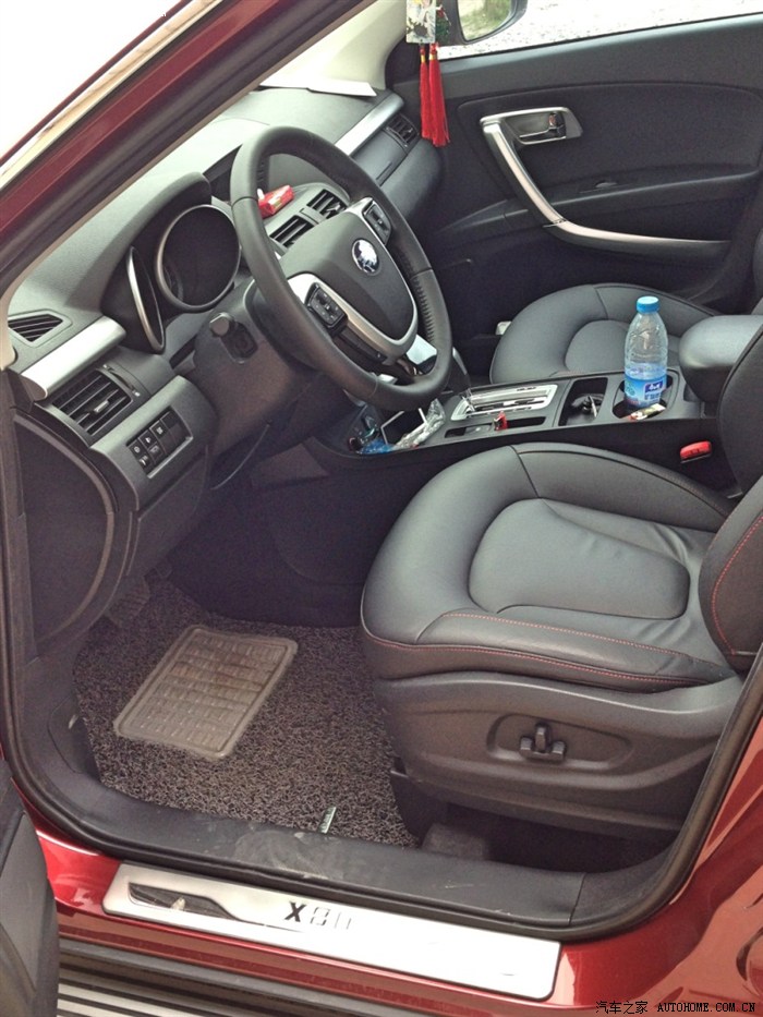 我提车是比较早的,5月16日上市,我5月17日就把车开回家了,5月23日上的牌,到现在2000公里了。前面的凯越1.8自动开了5年,由于工作经常开车出差,腰间盘突出了,所以一直想换辆能坐直的车开,就考虑了SUV,看过IX35,RAV4还有3008。4月底的时候帮家里的老款B70做保养,看见展厅一辆X80,当时就被外观吸引了,坐了一下挺舒服,但是不给试驾。说实话,我对老款B70的马六装备还是很信任的,所以开始关注。后来一直在等价格出来,16日出差,晚上看到了价格,至少那个价格对我来说觉得还好,可以接收。(不喜勿喷,每件东西在每个人心里都有不同价位,实在没必要强奸别人想法)17日一早到4S,看见白色的顶配展车换了1辆红色的2.0豪华,说白色顶配去坐试驾车了。和销售开始谈上路价格,2.0和2.3豪华都算了,个人趋向2.3,因为经常跑高速,得知2.3豪华银色不知道什么时候有车时,开始仔细打量那辆唯一的2.0豪华红色,觉得有点骚,但是颜色真的挺好看,越看越喜欢。谈了贷款,知道新车没有1年免息,而且做贷款的时间长,想想车停在展厅给人家摸摸坐坐也不高兴,就直接检查了一下买下了(可能大家觉得仓促,但是我不知道大家啊有这种想法,就是喜欢一件东西的时候,就想马上就能拥有,而且买车的钱我早准备了)。