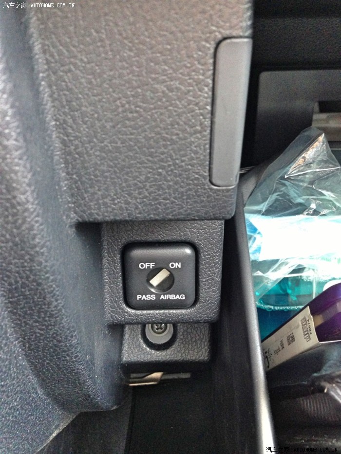 副驾驶气囊开关在手套箱里,我反正一直开着,觉得有点多余,真有要用到的时候,哪怕边上没人,弹出来随它吧,反正维修的钱也不在乎这点了。而且副驾做人的几率也不会太低。