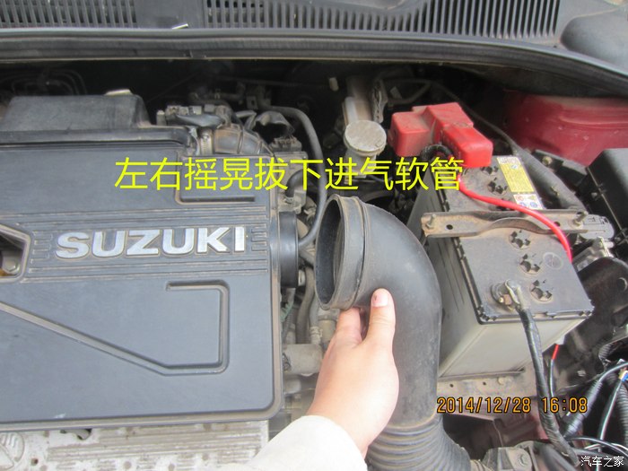 3、拔下进气软管,用巧劲摇晃着拔,很简单。
