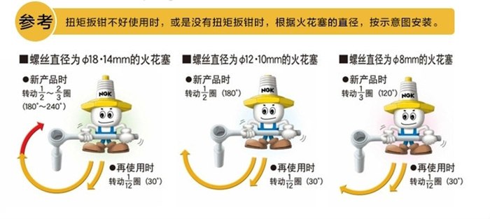 在没有扭矩扳钳的情况下,不要盲目暴力安装火花塞,会拧坏的,需要巧劲。根据火花塞螺丝的直径来判断扭到吃紧的情况下还需继续扭多少比较可学。116CX的螺丝直径为14MM,因此扭到吃紧时再扭1/2—2/3圈就可以了。有诗为证……