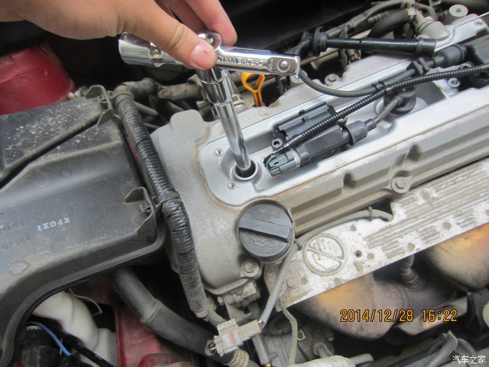 8、使用适合的工具拆除火花塞,想自己动手的同学,一定要根据我提供的参数找到称手的工具,否则好不容易拆卸了那么多东西,却眼睁睁看着火花塞拆不下来是很难受。