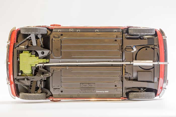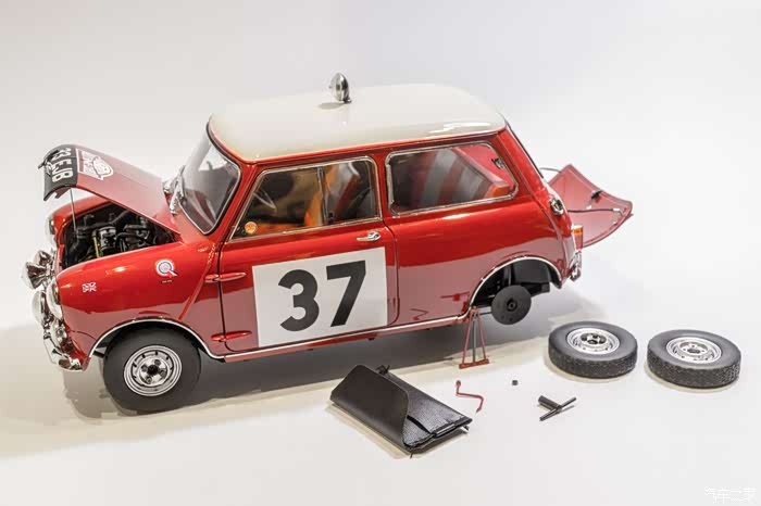 本人收藏的这台37号Mini Morris Cooper S,是太阳星出品的,比例1:12 。因为Mini本身小,所以这个比例也没显得很大,反而能更好得体现出细节,还有大量的可动部件,增加了不少可玩性。不足的是,零部件脱胶、掉件比较严重。开箱后的第一件事就是把掉下来的零件给粘回去。