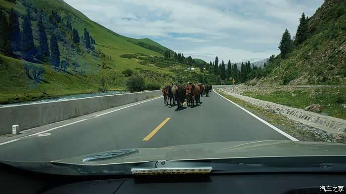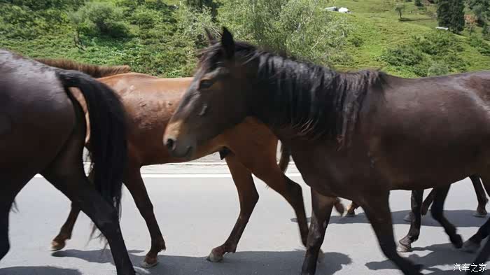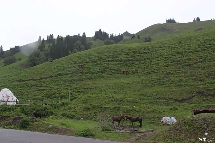 从新源出发向北经过则克台镇后,转向S316向北可达S315,但开了没多久,发现这里正在修路,而且单向行驶的路况太差,两公里就花了半小时,稍停了会,考虑了一下,如果这样下去,今天可惨了,所以当即掉头,返回G218向那拉提方向走,将唐布拉草原的美景留作下次的借口吧。因为昨天来时按导航从那拉提到新源是从X745走的,路况不错,就是限速多,而且多为60码,今天从G218返回也不算是走了重复路,但结果G218也在半幅修路,经过一段颠簸找到一个岔道上了墩那高速才好一些。下高速后就到了那拉提镇。