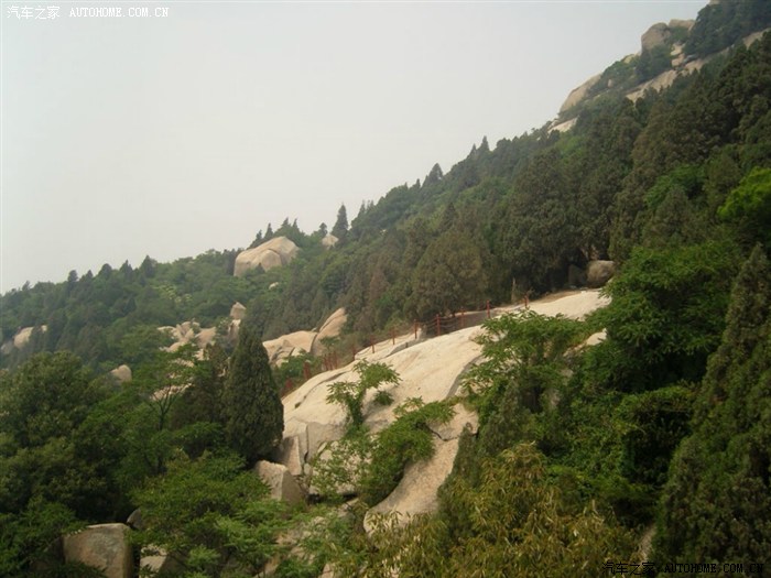 看到红色栏杆了吗,刚才就是从那里上山的,那部分没有石阶,就在大石头上走滴...